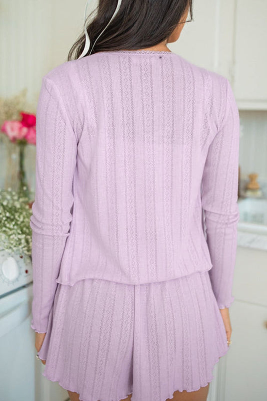 Cheery Print Collared Neck Top and Shorts Lounge Set