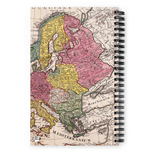 Journal Notebook Spiral Metal Binding, 140 Dotted Pages Soft Cover, Vintage Color Map Graphic
