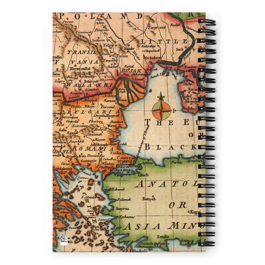 Journal Notebook Spiral Metal Binding, 140 Dotted Pages Soft Cover, Vintage Map Graphic