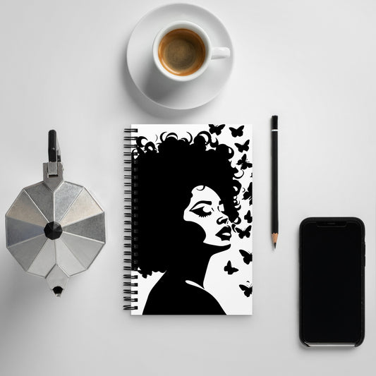 Journal Notebook Spiral Metal Binding, 140 Dotted Pages Soft Cover, Curly Afro Graphic