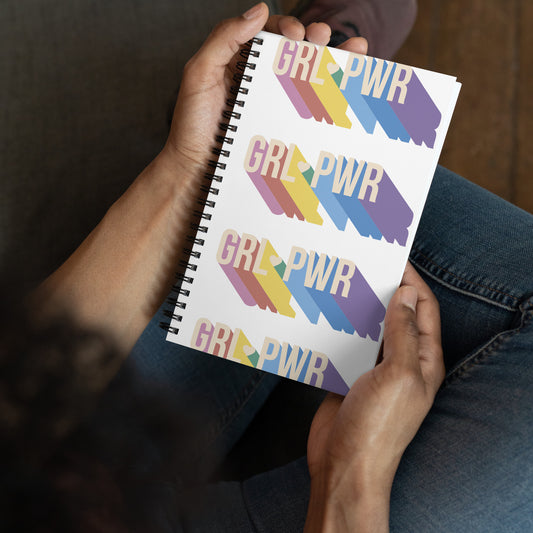 Journal Notebook Spiral Metal Binding, 140 Dotted Pages Soft Cover, Girl Power Print Graphic