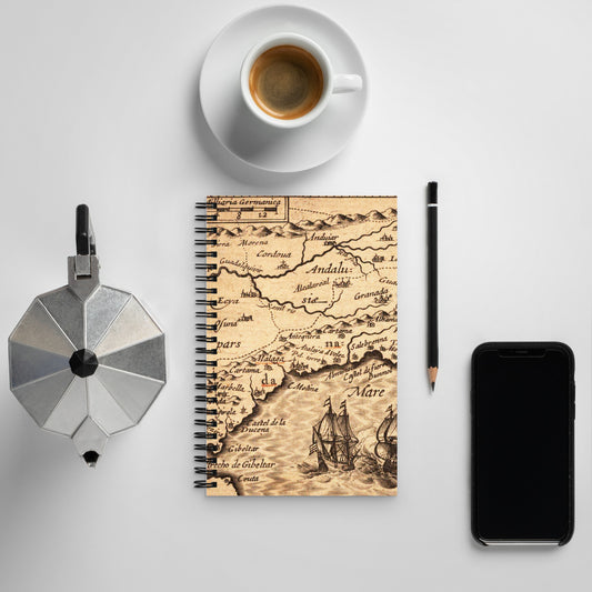 Journal Notebook, Spiral Metal Binding, 140 Dotted Pages, Old Vintage Map Graphic