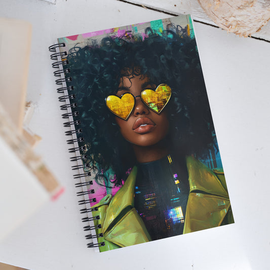Spiral Journal Notebook Yellow Hearts and Curly Hair