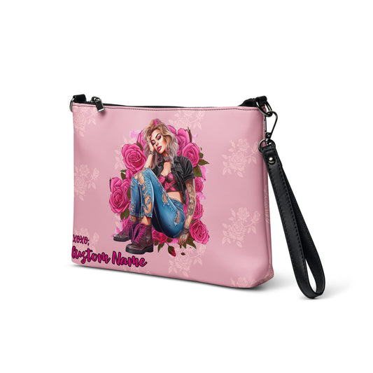 Custom Name, 2 in 1 Crossbody & Wristlet Bag, Women with Roses