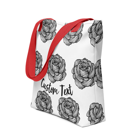 Custom Text, Women's Tote Bag Black and White Rose Graphic Pattern Print