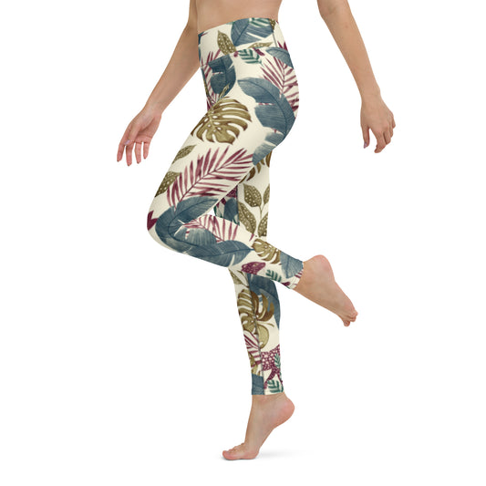 Women's Workout Yoga Leggings, Plant Printed Pattern