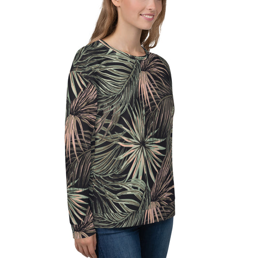 Women's Pullover Soft Fleece Crewneck Sweatshirt, Pink Tropical Plant Printed Pattern