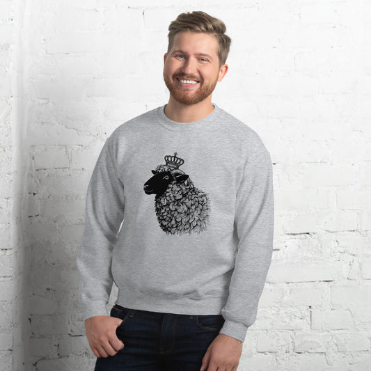 Pullover Adult Sweatshirt, Black Sheep with Crown Graphic