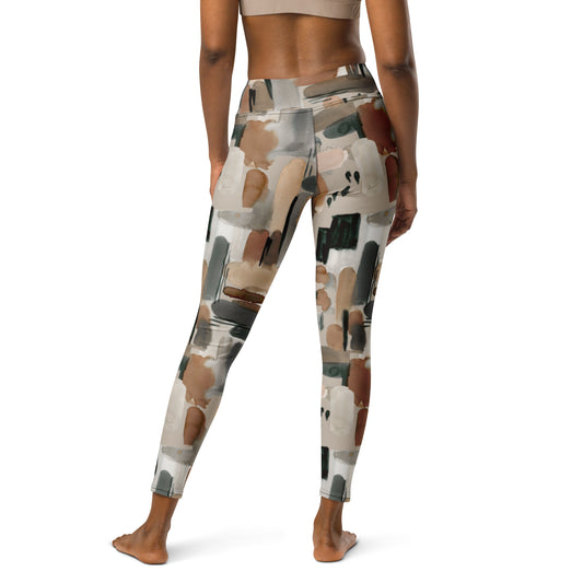 Women's Workout Yoga Leggings, Brush Stroke Printed Pattern
